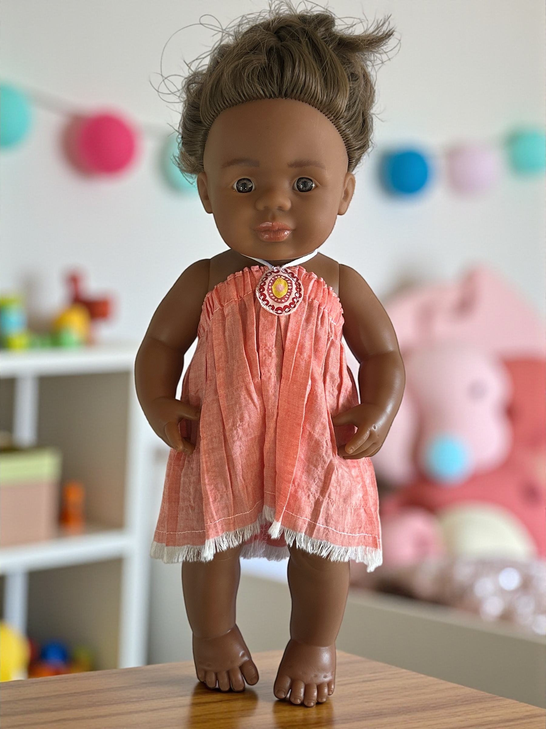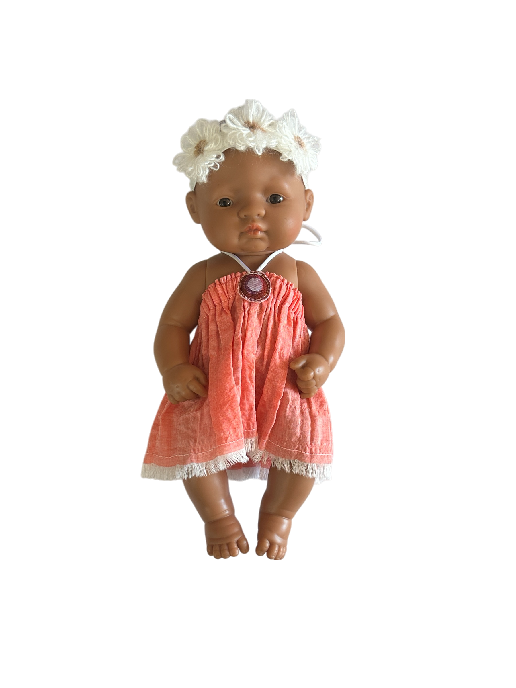 Made to suit 32cm & 38cm Miniland Dolls but should also fit most doll brands in the same length/size. Designs and sizes of the dress may vary due pattern placement.