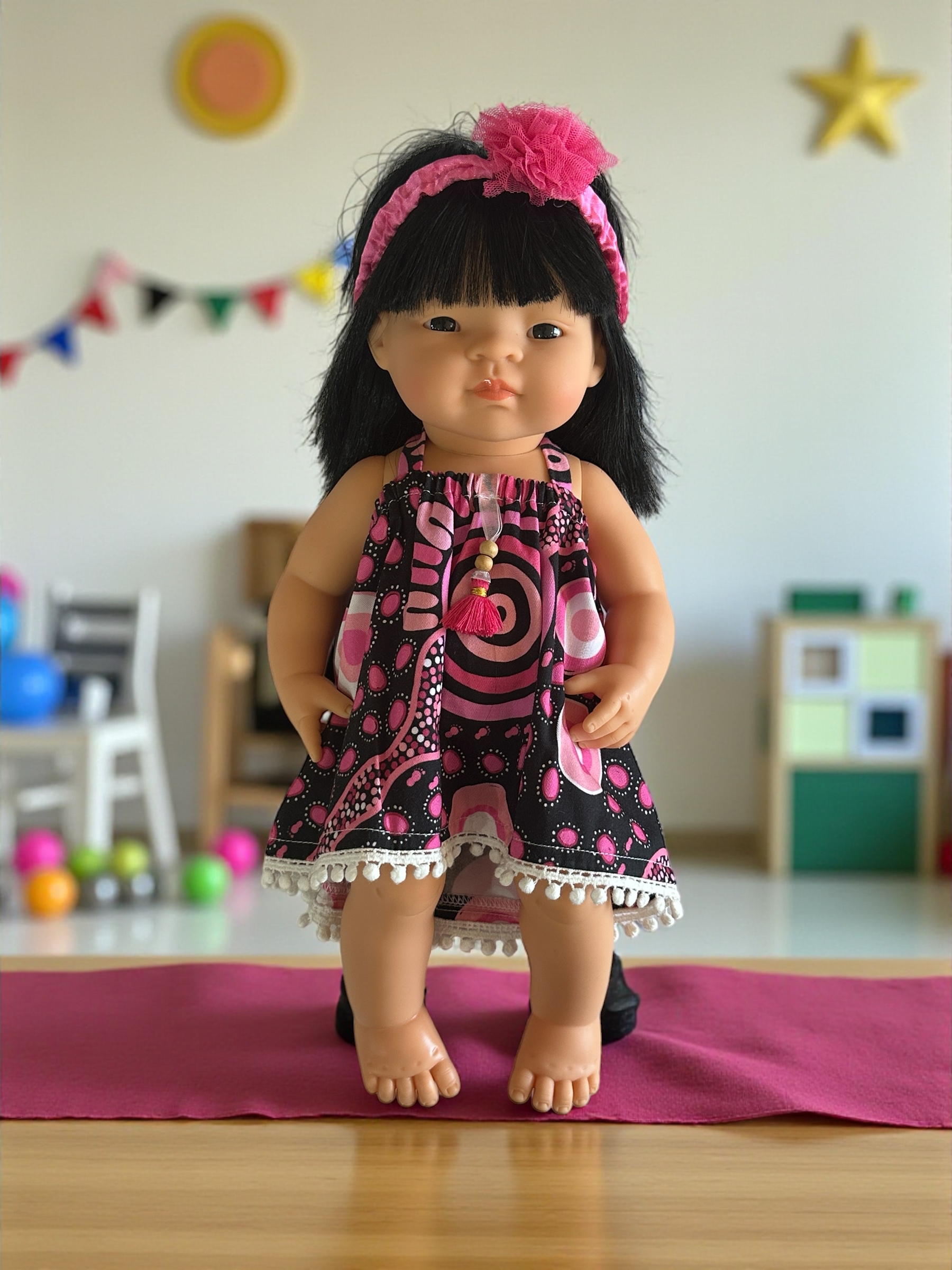 Fran-khi’s doll clothes are handcrafted using premium Indigenous print fabrics created by artists from across Australia.