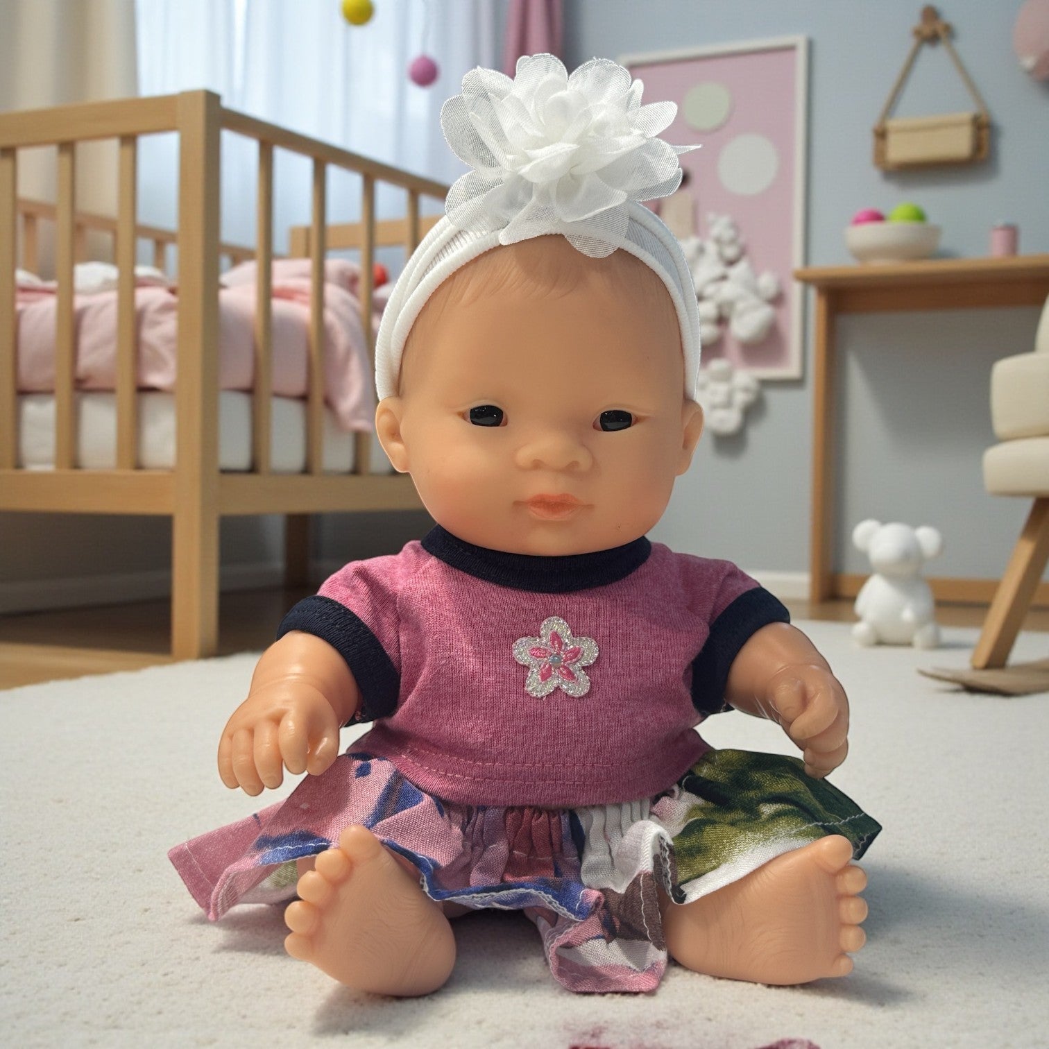 The set offers both charm and ease of dressing. Carefully made with attention to detail, this twin set is perfect for adding an elegant, coordinated look to your doll’s wardrobe.