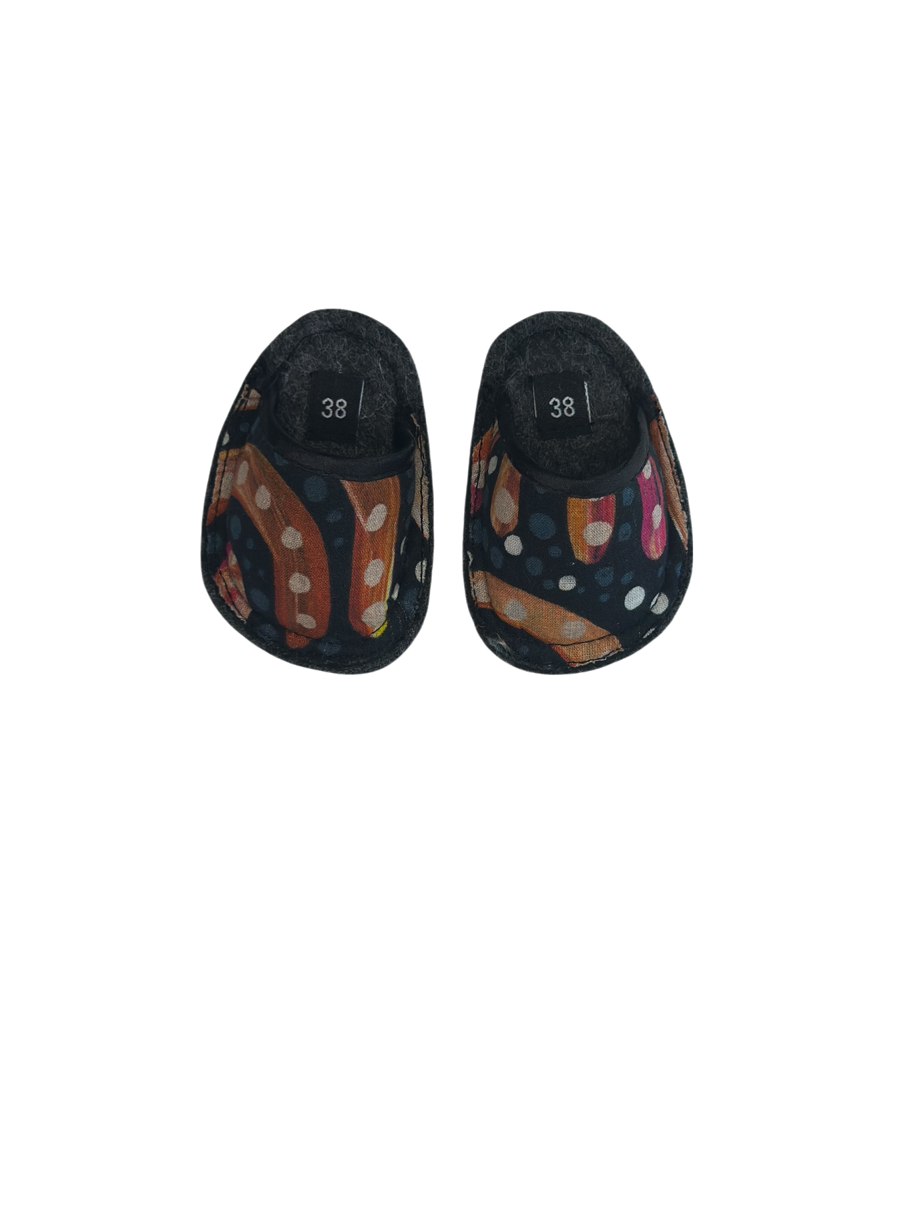 Keep your doll cozy and stylish with our handmade felt slippers — beautifully designed to match the Sandhills at Sunset pyjamas. Featuring Indigenous-inspired detailing and a soft finish, each pair adds warmth, colour, and meaning to your doll’s outfit, celebrating culture through every little step.